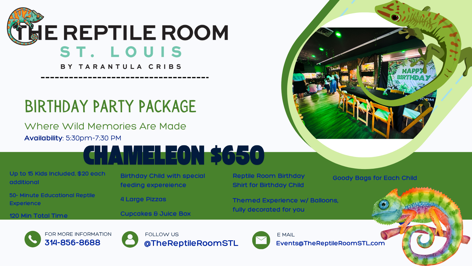 π¦ CHAMELEON BIRTHDAY PARTY PACKAGE β $650